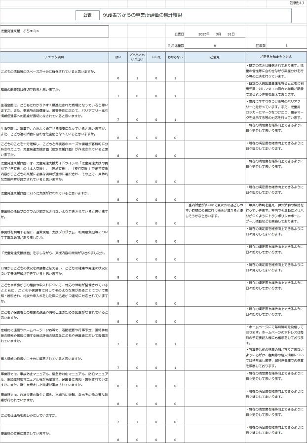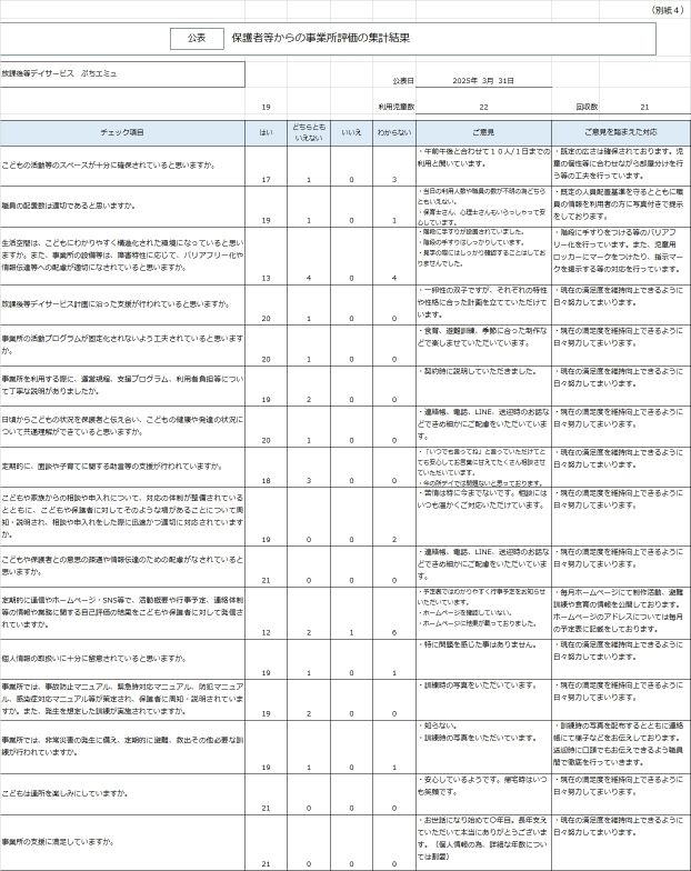 放課後等デイサービス 保護者アンケート集計結果