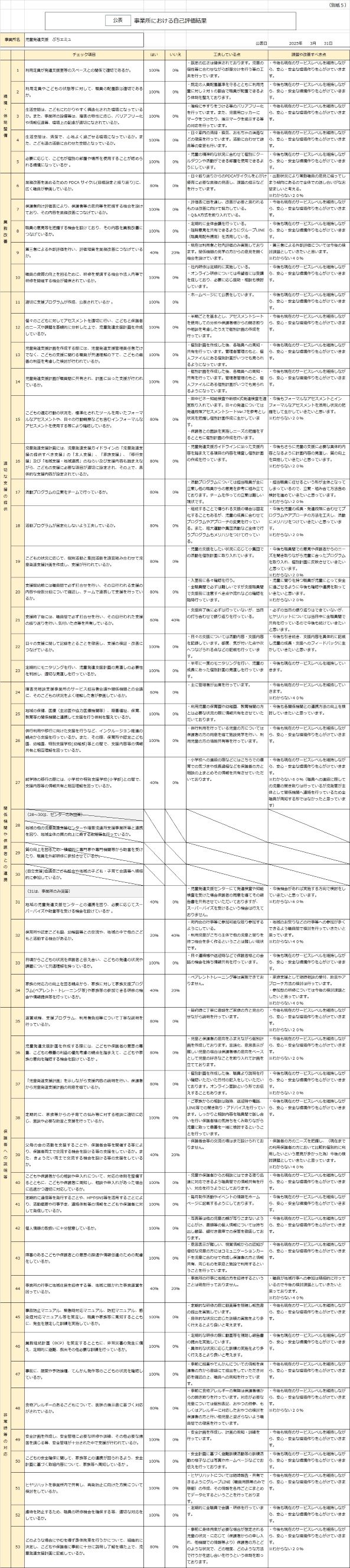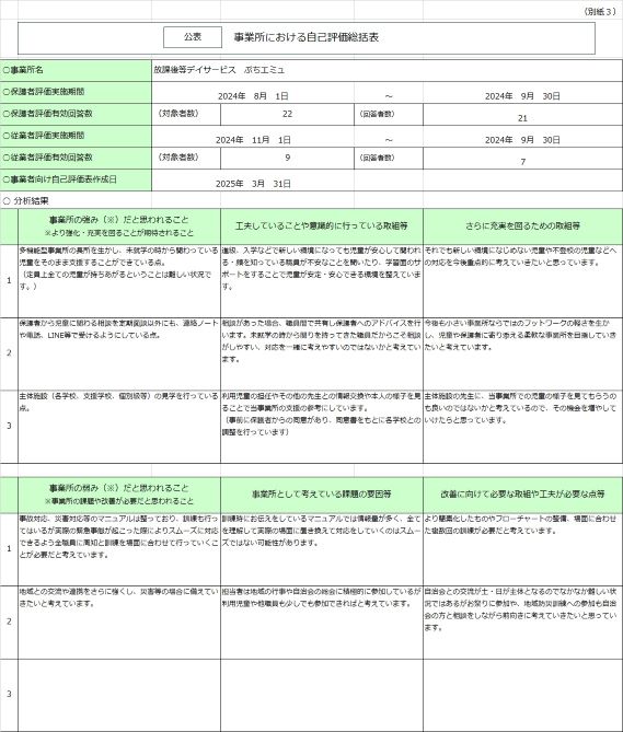 放課後等デイサービス事業所職員向け 自己評価総括表